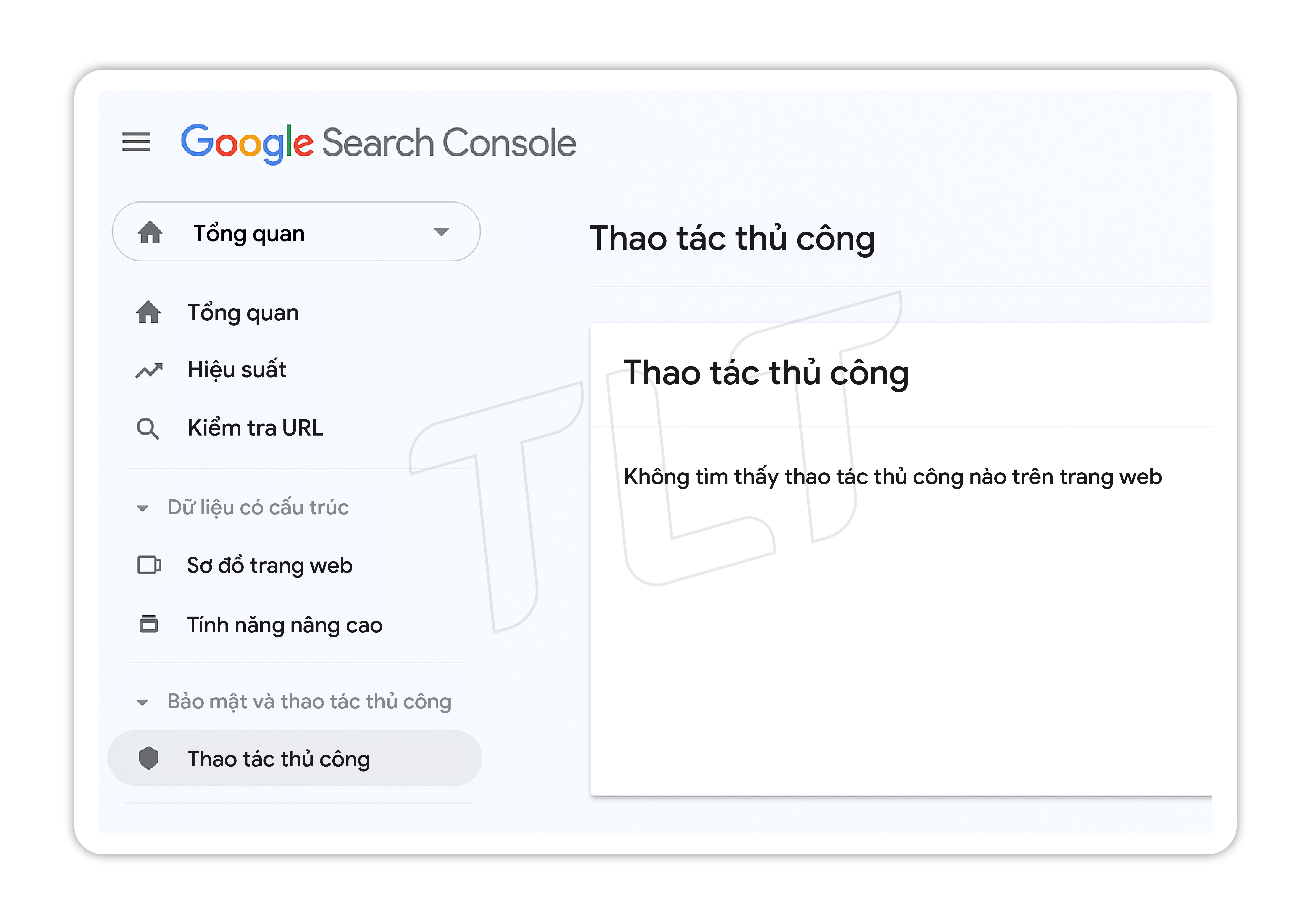 Giao diện Google Search Console để kiểm tra thao tác thủ công