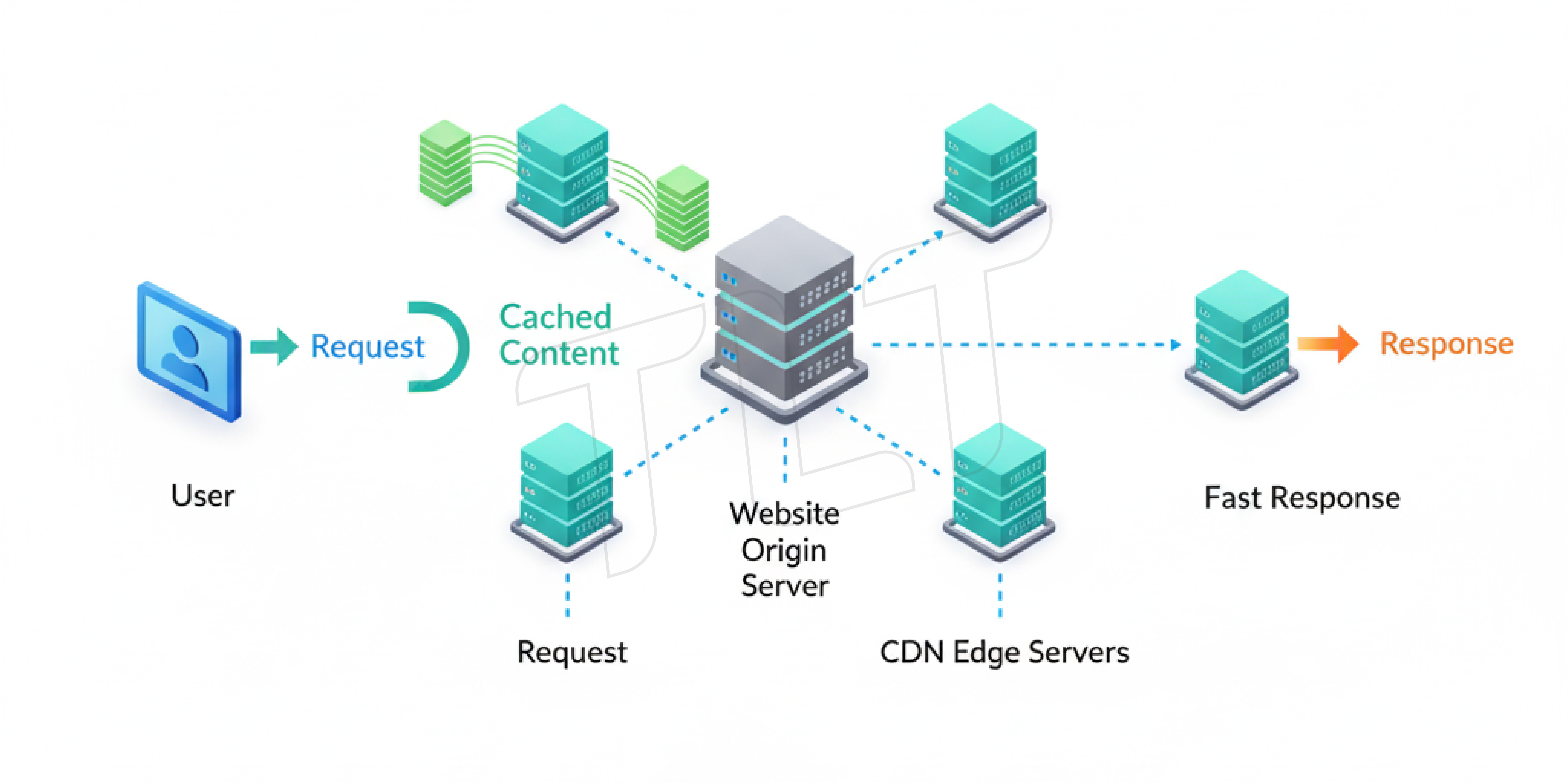 Khi người dùng truy cập website, yêu cầu sẽ được định tuyến đến máy chủ CDN gần nhất về mặt địa lý. Điều này giúp giảm thiểu độ trễ mạng (latency) và tăng tốc độ truyền tải dữ liệu, mang lại trải nghiệm nhanh chóng và mượt mà hơn cho người dùng.