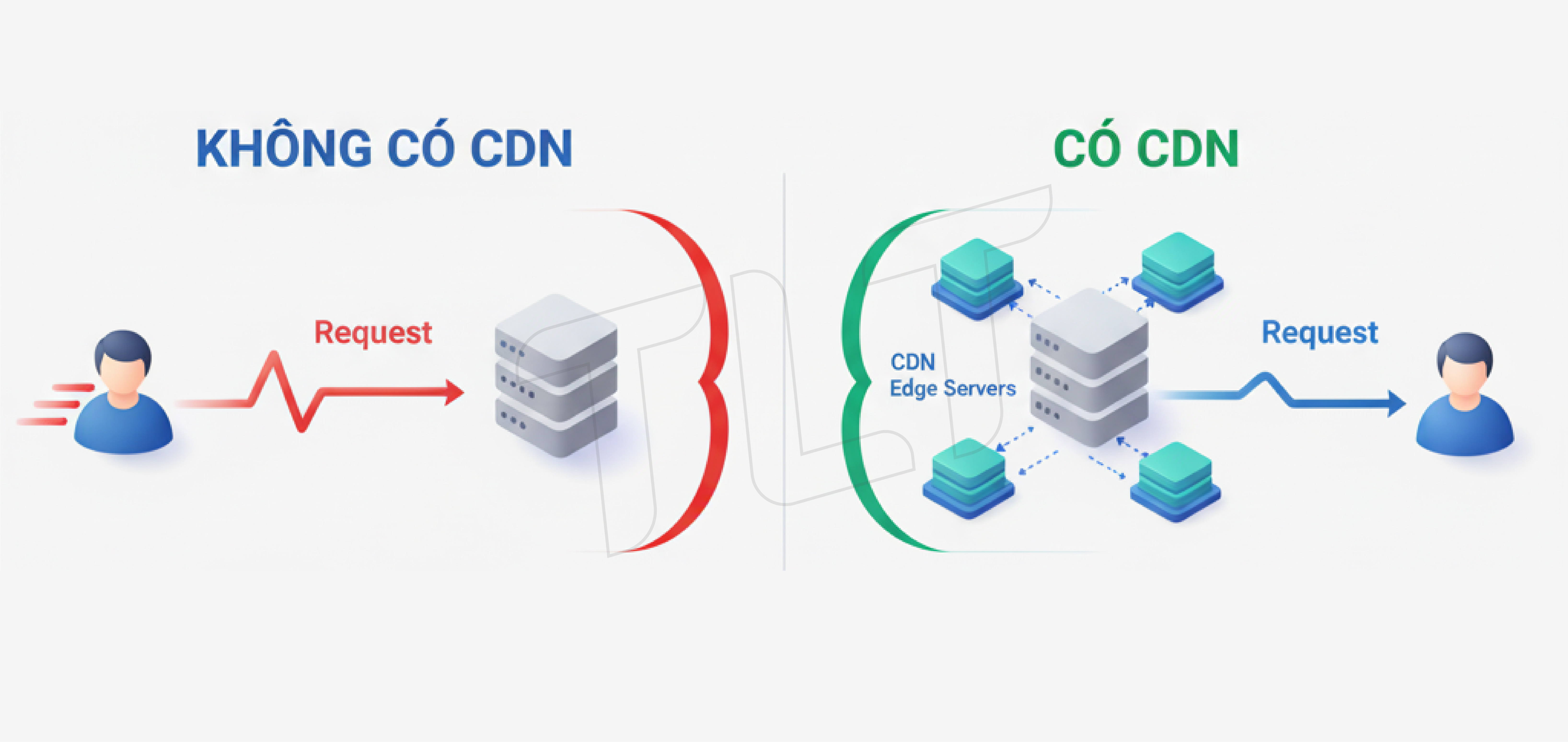 Đồng thời, CDN giảm tải cho server gốc, giúp server hoạt động ổn định hơn, đặc biệt trong các trường hợp có lượng truy cập lớn hoặc tấn công DDoS.