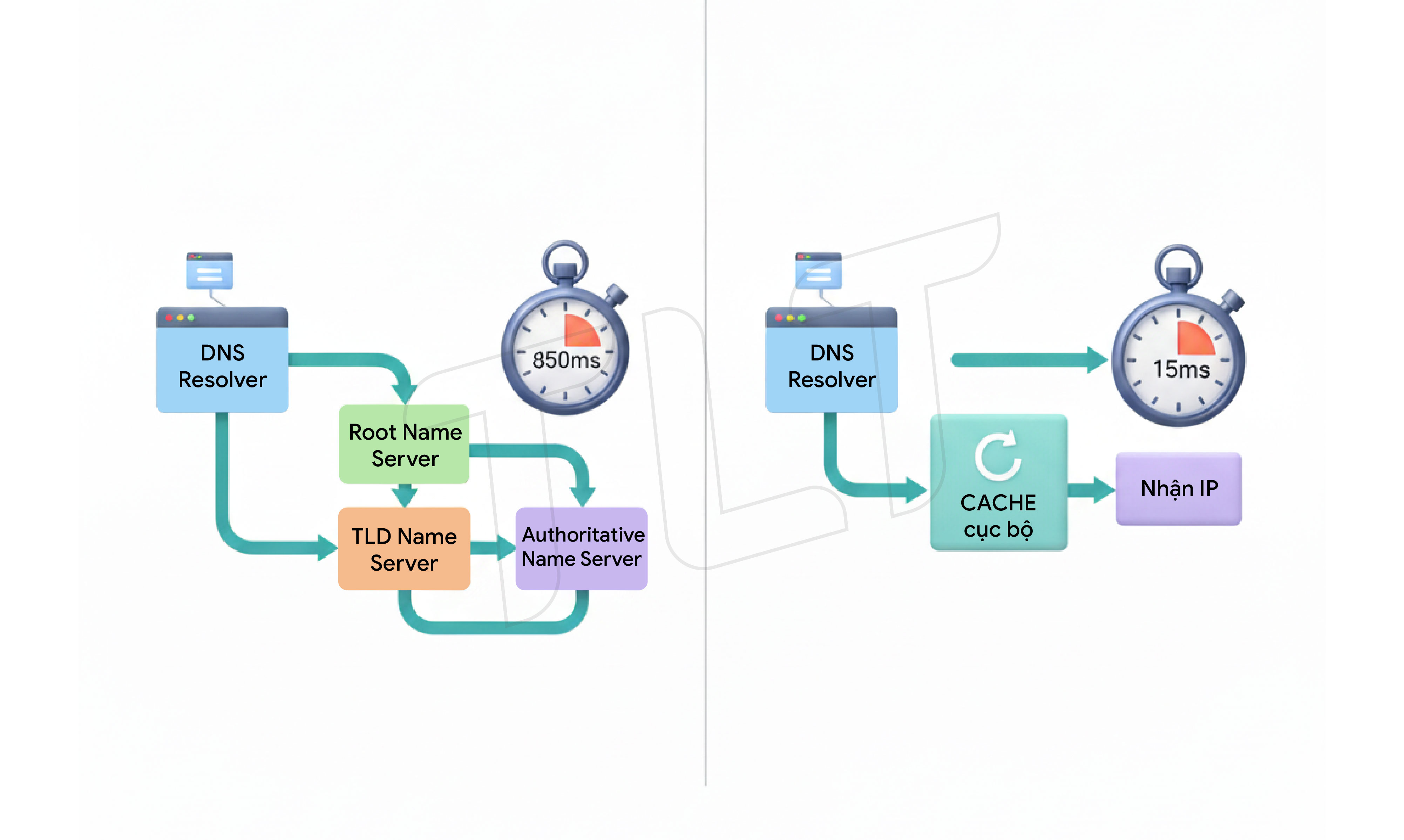 Tên ảnh: Minh họa cơ chế DNS Cache giúp tăng tốc độ tải trang và giảm thời gian phân giải.