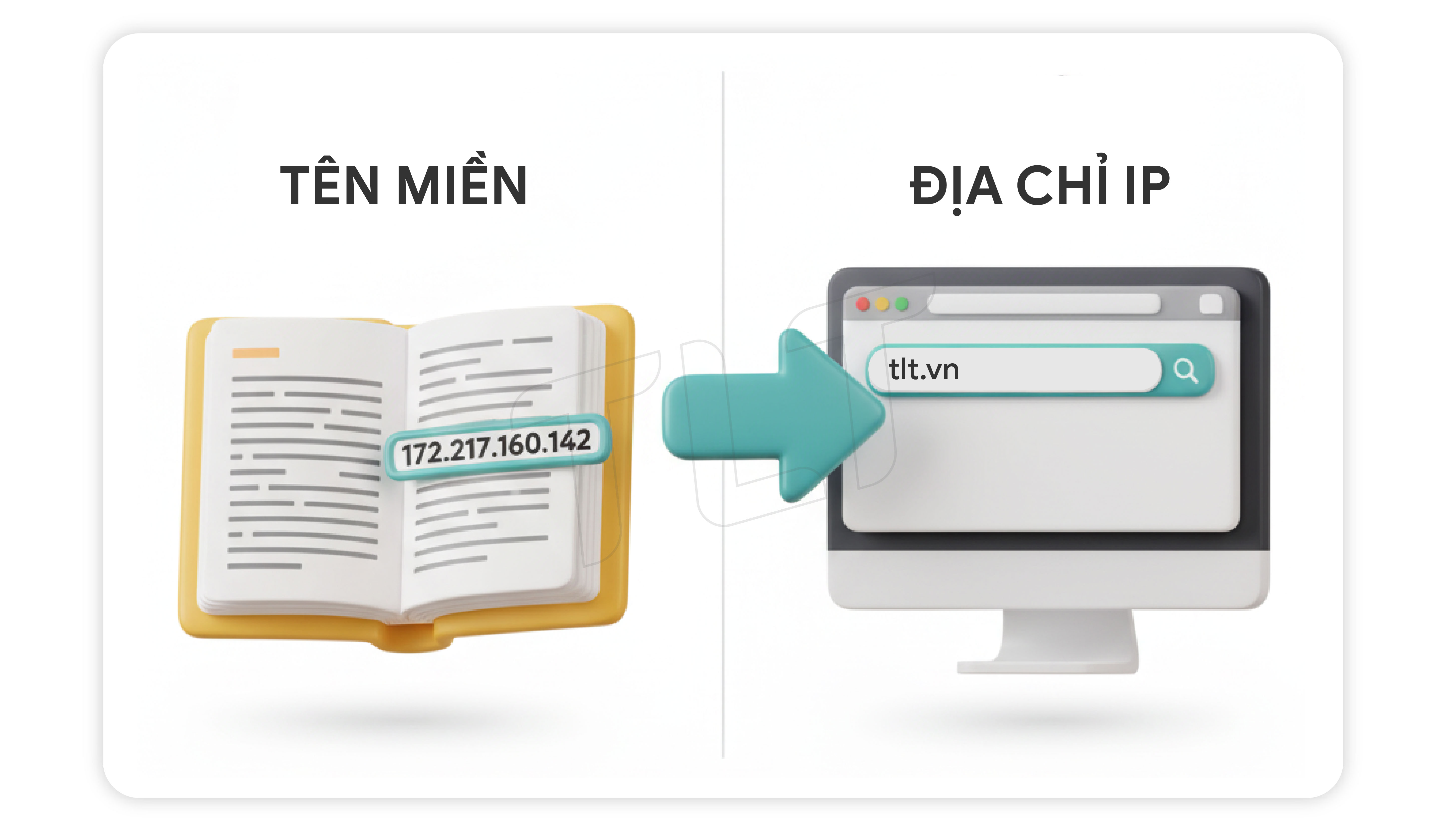 Đây là chức năng quan trọng nhất của DNS. Khi bạn gõ 'tlt.vn' vào trình duyệt, DNS sẽ chuyển tên miền đó thành địa chỉ IP của máy chủ chứa website tlt.vn.