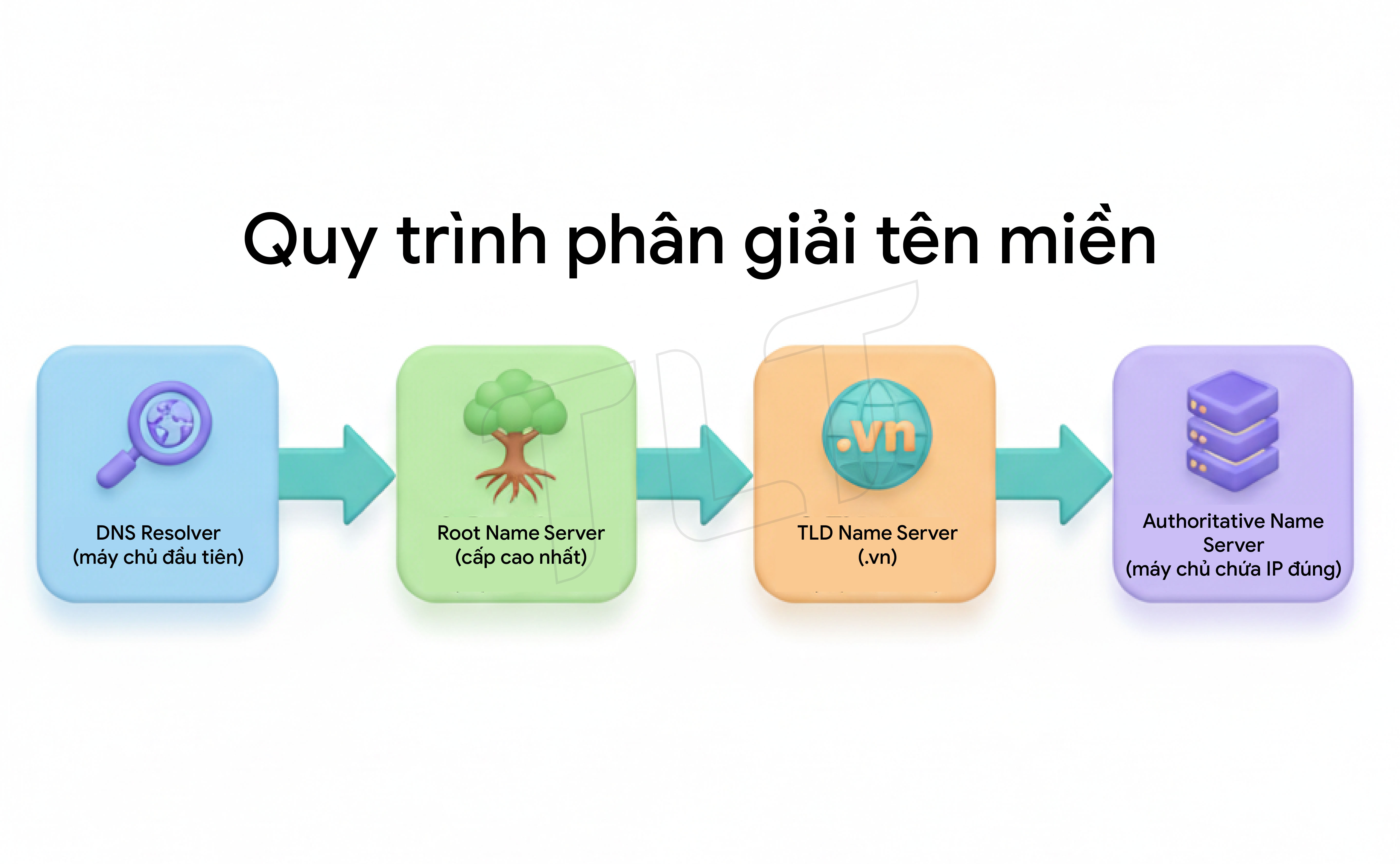 Quá trình phân giải tên miền từ tên miền dễ đọc sang địa chỉ IP là một chuỗi các bước phức tạp nhưng diễn ra rất nhanh chóng. Để hiểu cách nó hoạt động, chúng ta cần biết các thành phần chính tham gia vào tiến trình này.