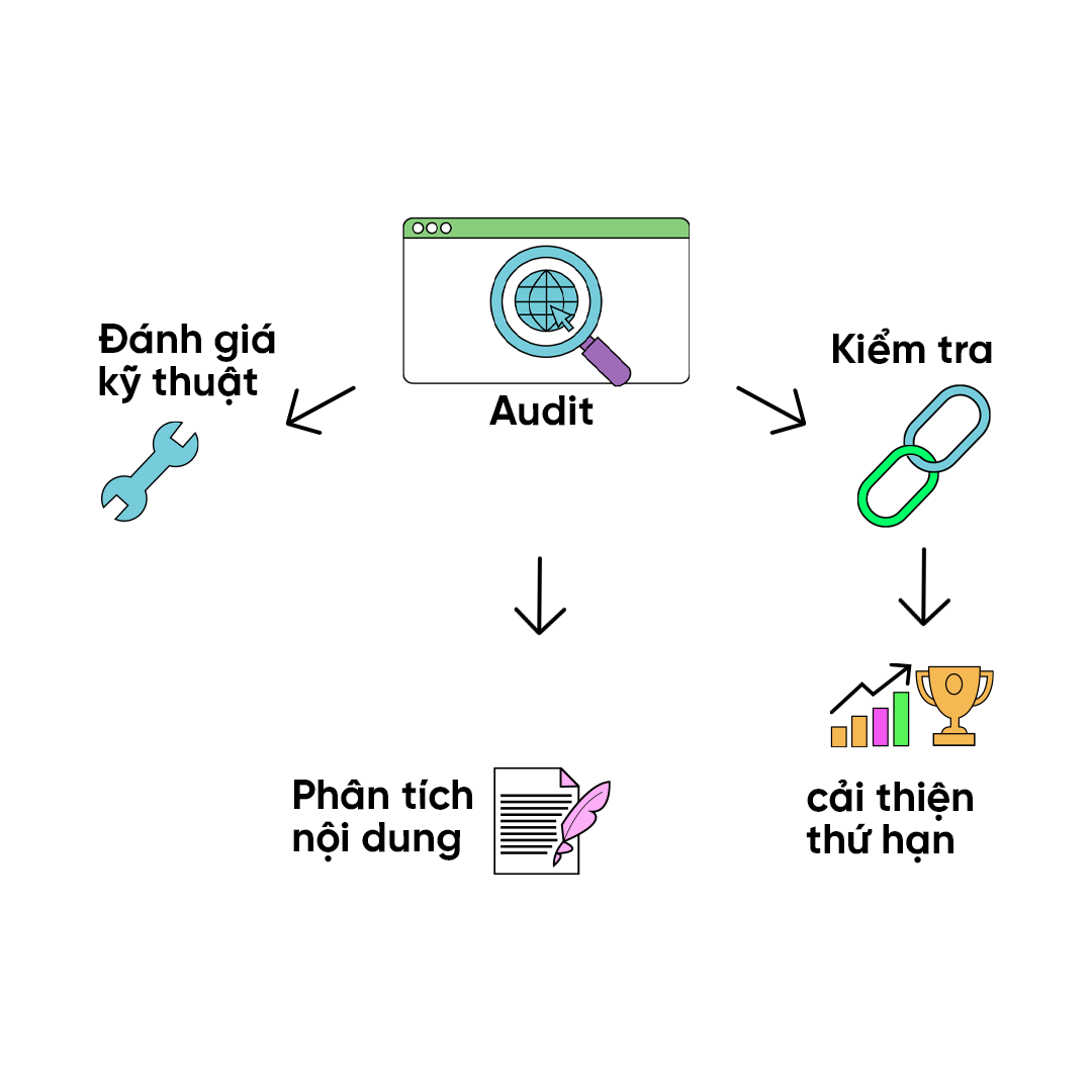 SEO Audit là quá trình đánh giá toàn diện website của bạn để xác định các yếu tố ảnh hưởng đến hiệu suất tìm kiếm. Mục tiêu là phát hiện lỗi kỹ thuật, nội dung, backlink, từ đó đề xuất giải pháp cải thiện thứ hạng, tăng lưu lượng truy cập tự nhiên và tối ưu trải nghiệm người dùng.