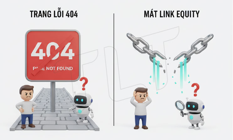 Liên kết gãy là đường dẫn không còn tồn tại, dẫn đến lỗi 404 khi người dùng truy cập. Nguyên nhân thường gặp là xóa trang, thay đổi URL mà không chuyển hướng, hoặc liên kết đến các trang ngoài đã ngừng hoạt động.